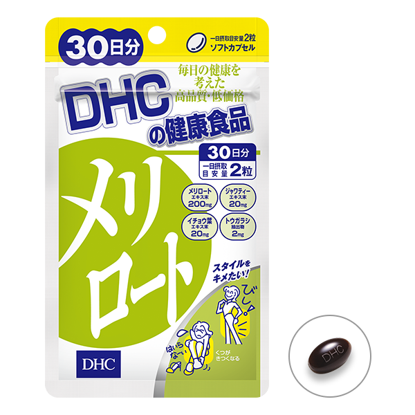 Melilot is a legume herb that contains an abundance of the aromatic substance coumarin. DHC’s Melilot reduces your body’s extra water with extracts from melilot, java tea, ginko leaf and red pepper. Recommended for people who want to keep their slim figure all day and for women who have tired legs, who feel their shoes getting tight by the evening, and who have sore legs from standing or sitting all day.