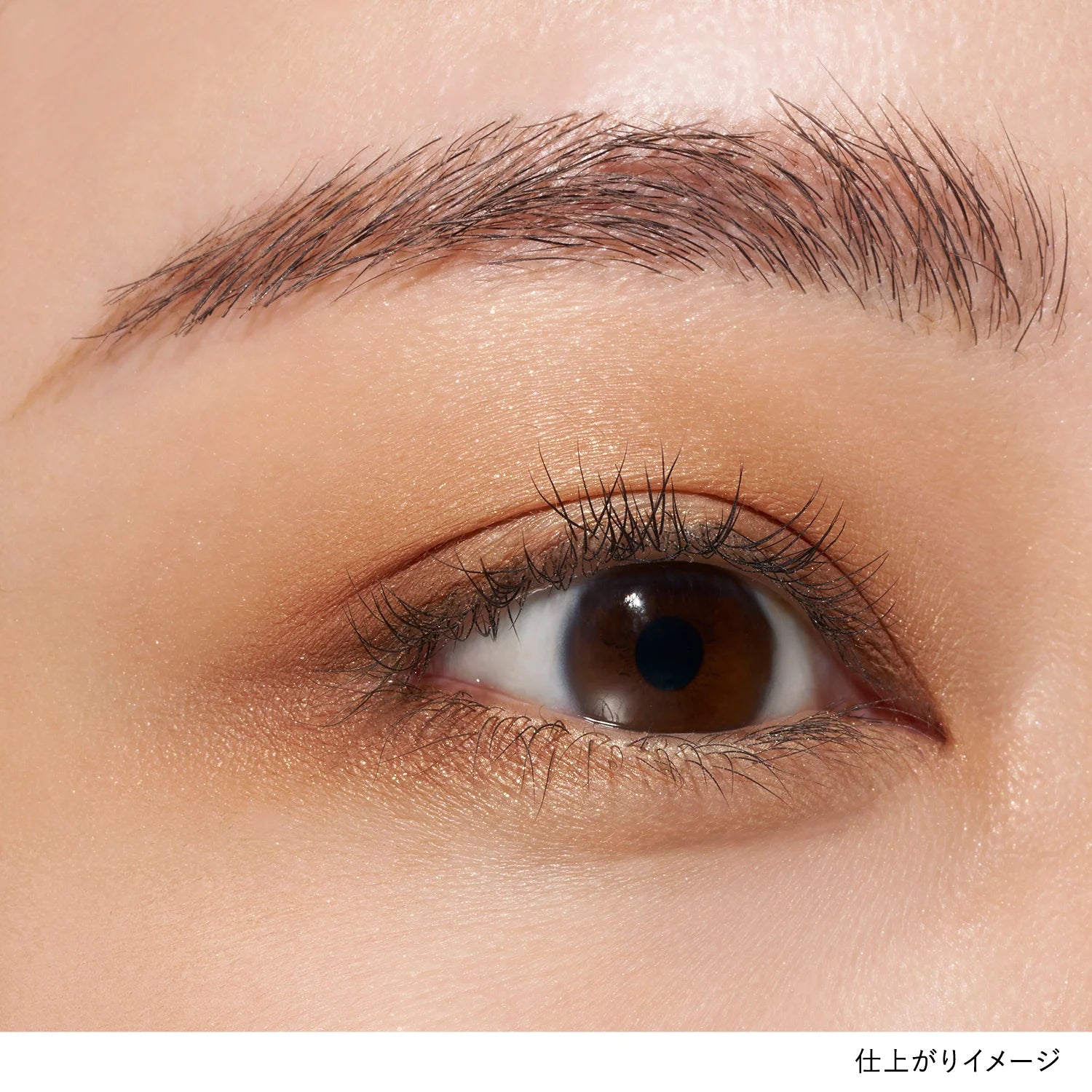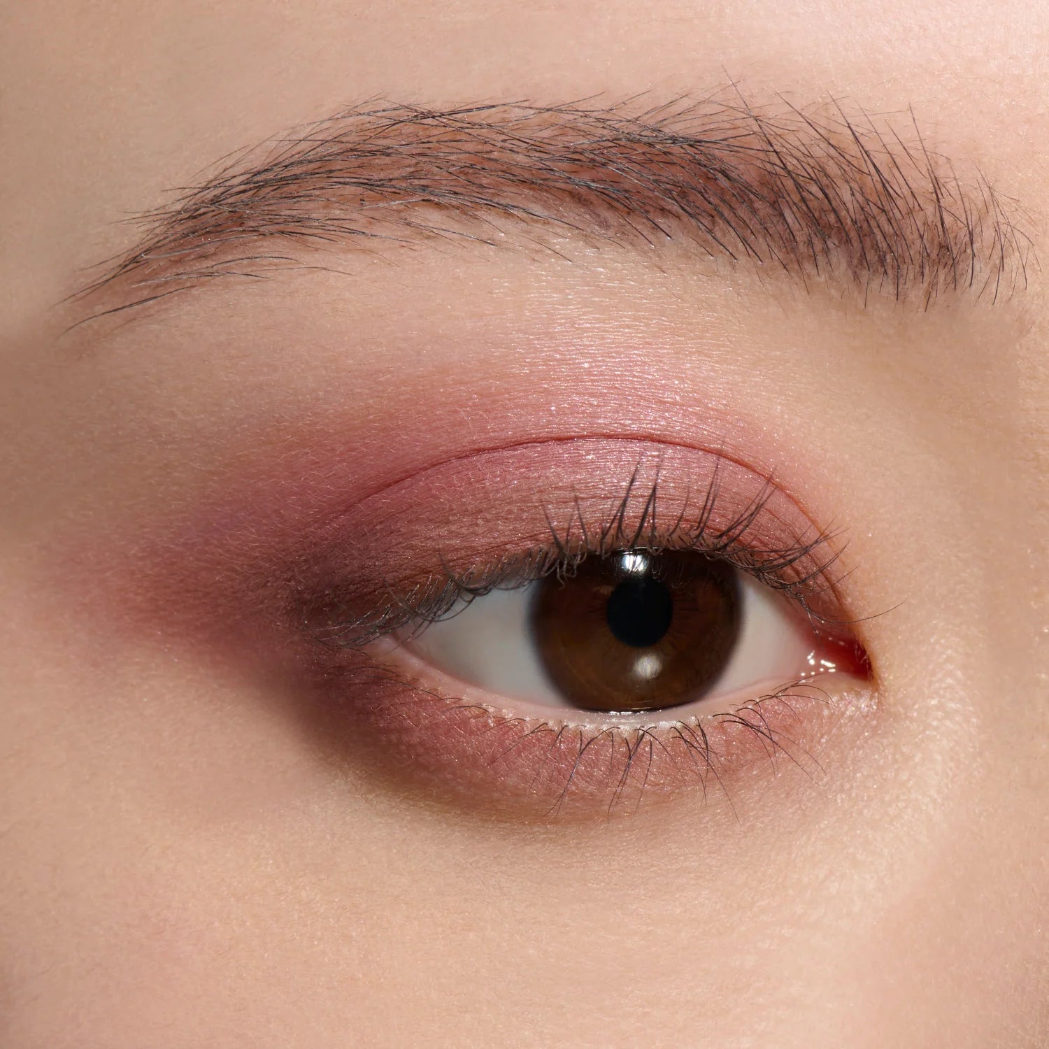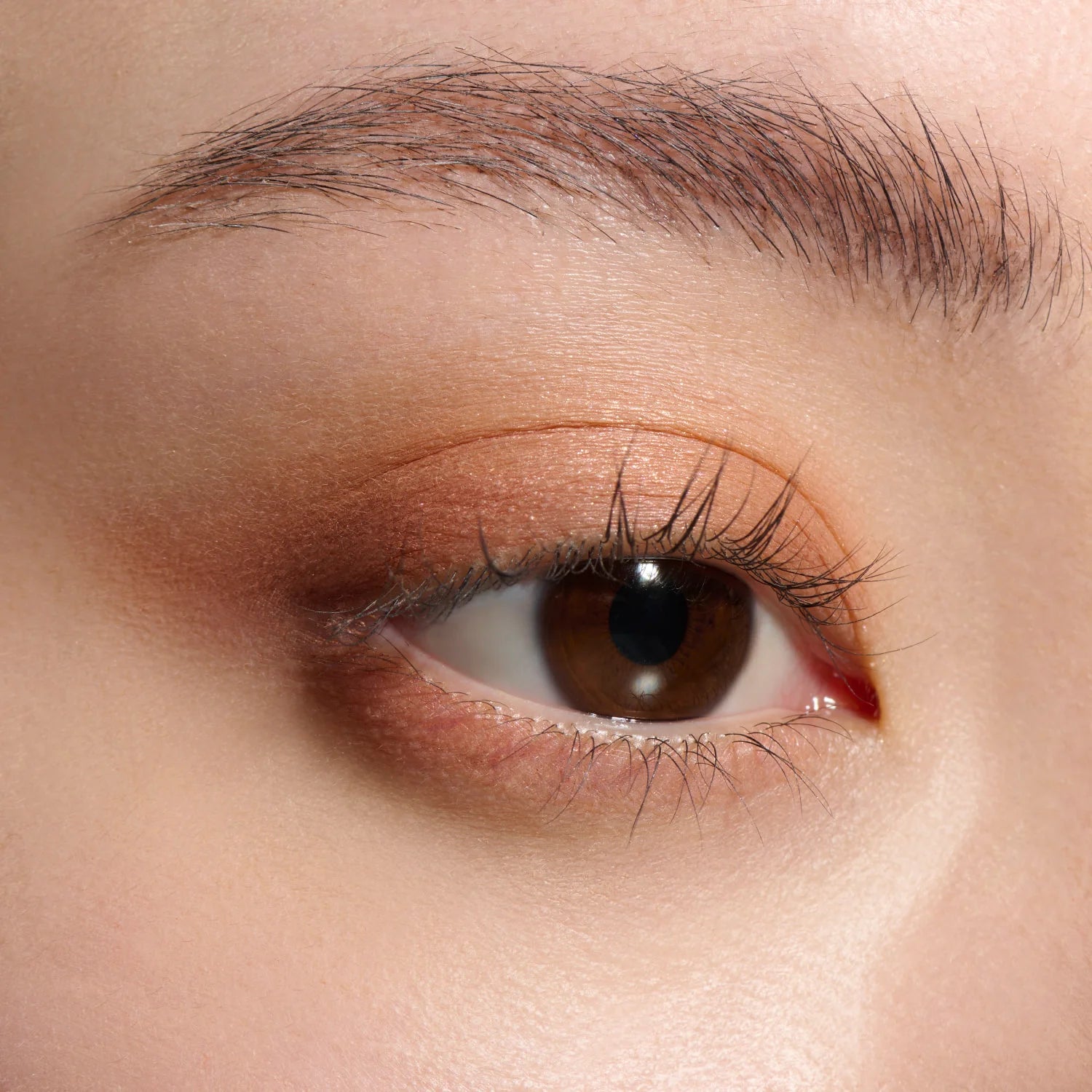A soft, matte orange-beige with a soft glow gently adorns the eyes.