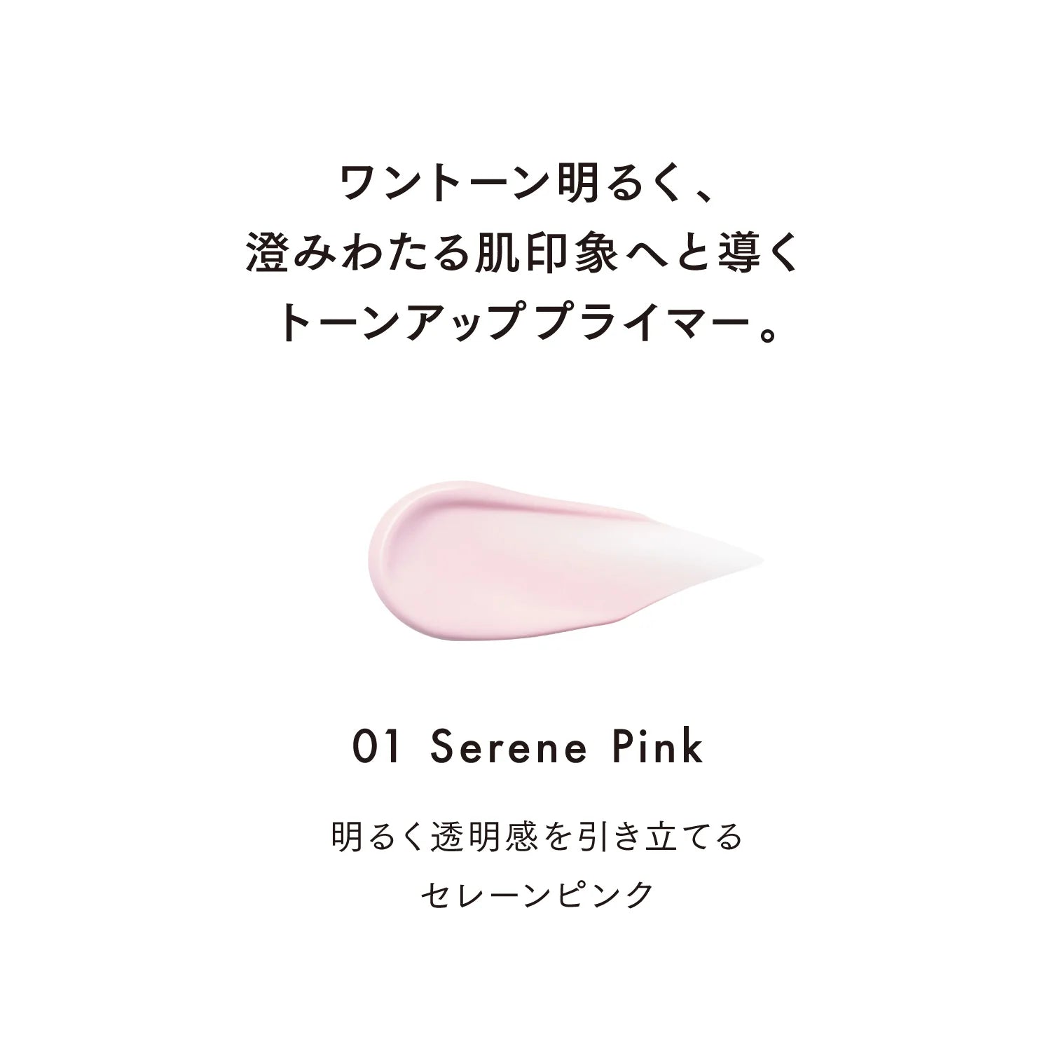 This tone-up primer skillfully covers unevenness and patchy coloring for clear skin that looks as if it has been carefully created.
