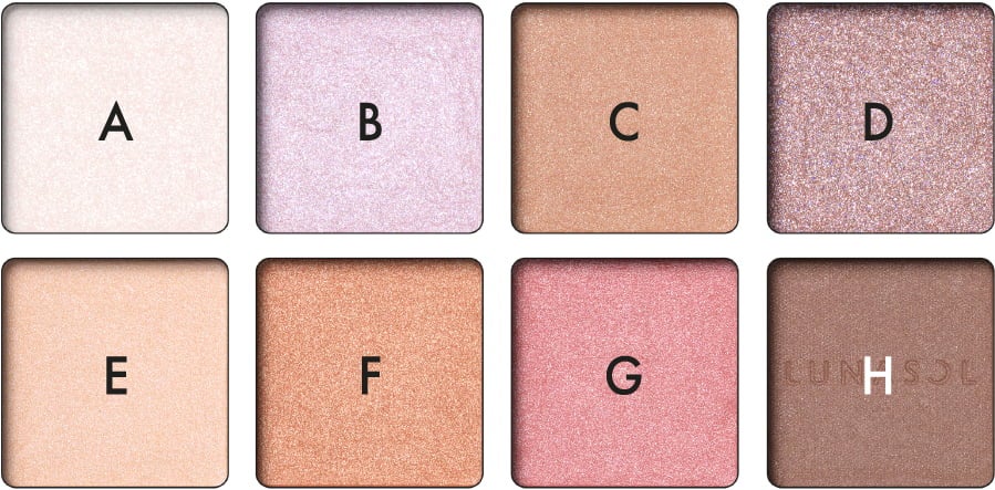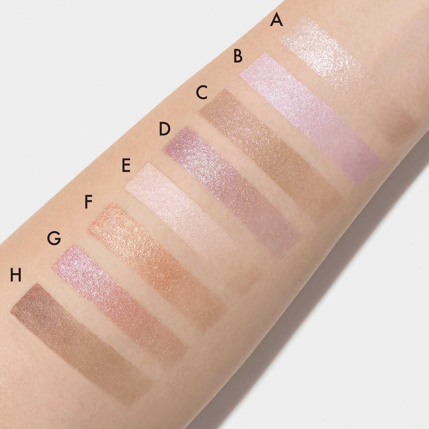 H: A beige-brown that adds soft warmth and natural, sheer shadows to the eye area.