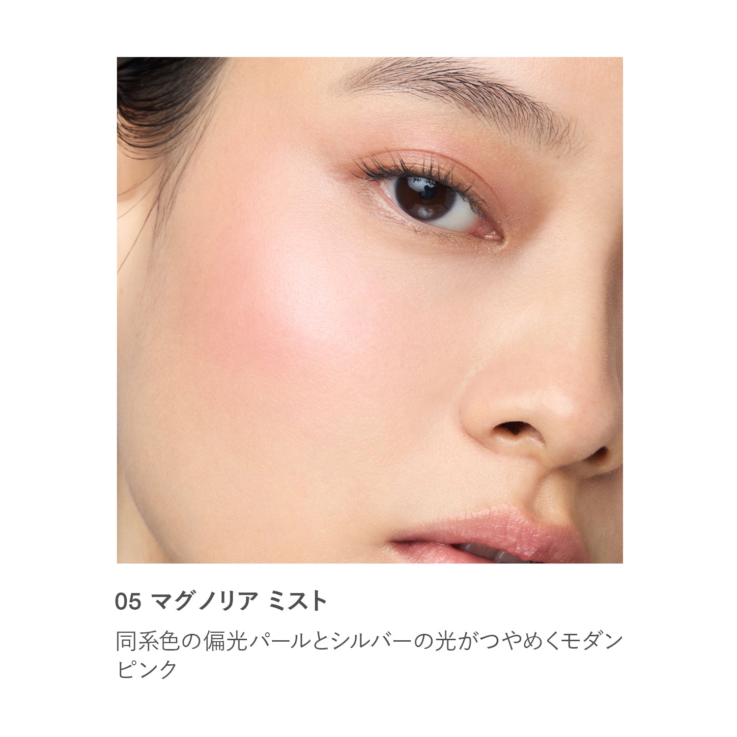 A pink rose in which frosty pearls wrap a subtle complexion. It brings out an innocent look that appears to be uplifted from the cold when used on the cheeks, as well as on the inner corners of the eyes and undereyes.